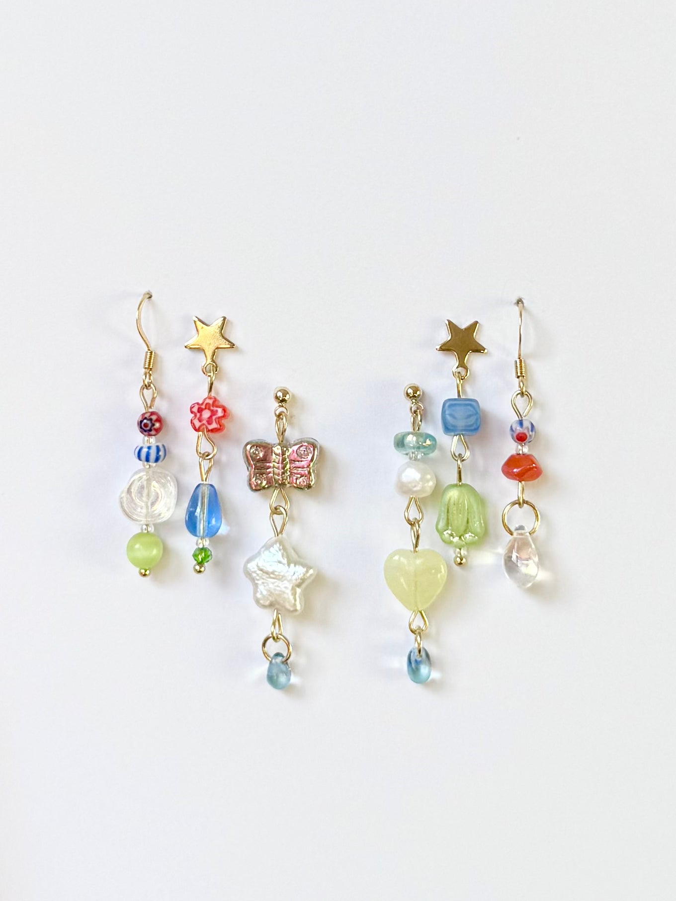 glass and freshwater pearls on stainless steel gold hooks and studs! * the butterfly beads are double sided :-)